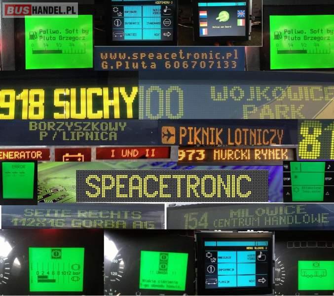 AUTOBUSY ELEKTRONIKA WYŚWIETLACZE AUTOBUSOWE TABLICE KIERUNKOWE DESKI I PULPITY KIEROWCÓW PEŁNY SERWIS Kanał na YouTube proszę zobaczyć . https://www. youtube. com/channel/UCHIbdjCdZRSmdDcOjSLdvlw Kompletny serwis systemu Mannesmann VDO AG . Wyświetlacze wymiana na nowy . Gwarancja , Język Polski Wszelkie niedomagania typu brak sterowania lub brak możliwości wyłączenia funkcji , to typowe uszkodzenia D-MUX. Naprawa wszystkich typów. Deski typu FAP oraz MOKI , również SVGA , KOLOROWE, 16 i 32 bitowe. Wszystkie typy autobusów. MIEJSKIE ORAZ TURYSTYCZNE NAPRAWY NA MIEJSCU U KLIENTA NA TERENIE CAŁEGO KRAJU. USŁUGA EKSPRES GWARANCJA NAJNIŻSZE CENY GRZEGORZ PLUTA 606-707-133 http://www. speacetronic. pl Naprawa multiplekserów D-MUX MUX2-B MUX2-M oraz FPS Mercedes Komputery centralne ZRB-2BD. Elektroniczne sterowniki drzwi , silnika , skrzyni biegów. WABCO, EDC, MTS, ATC, BOSCH, PRONOVA, ECAS TABLICE KIERUNKOWE PROGRAMOWANIE SERWIS WSZYSTKIE DOSTĘPNE TYPY TABLIC LAWO LLE, BROSE, INFOSYSTEMS, AEG, MOBITEC, GORBA AG, TRANSIT-MEDIA, DUHAMEL-LUMIPLAN , AMELI SPA, VDL, KRUEGER-APPARATEBAU, ISA, I INNE MOBITEC - STEROWNIKI ICU 400 , ICU 402, Z300TD, ICU 600 TABLICE LED FLIP - DOT LAWO - L8401, L86XX L87XX TABLICE LED LCD FLIP-DOT MONO-SYSTEM BROSE - ZB100 PŁYTY SAS505-3 SAS535-4 MONO-SYSTEM TABLICE LCD, FLIP-DOT AMELI - STEROWNIKI VDL FY7000, C12000 LED KOLOR LED DUHAMEL- STEROWNIKI PF5000 PF5004 PF5005 TABLICE FLIP-DOT LED DUHABUS GORBA - TABLICE LED , LCD , FLIP-DOT STEROWNIKI OD CU-1 DO CU8 TRANSIT-MEDIA - TABLICE LED, FLIP DOT HANOVER DISPLAY- TABLICE LED, FLIP DOT , STEROWNIKI ERIC , DERIC KRUEGER- TABLICE LCD, FLIP-DOT. POLSKIE CZCIONKI , ZNAKI GRAFICZNE , W NIEKTÓRYCH SYSTEMACH RÓWNIEŻ ALFABET ROSYJSKI (CYRLICA) RÓWNIEŻ SYSTEMY POLSKIE PIXEL - STEROWNIKI STR1. 1 , STR1. 2 , STR1. 3 , KPP2, ASTERIX TABLICE FLIP-DOT LED , LED II KASOWNIKI R&G - STEROWNIKI SRG3000, SRG3100, SRG4000, SRG5000 TABLICE ETK, ETKO, LED KASOWNIKI AUTORYZACJA LAWO, GORBA, DUHAMEL, AMELI, PIXEL, R&G , MOBITEC. Usługi na miejscu u klienta bez potrzeby demontażu urządzeń. >>>>>>>> <<<<<<<<<<<< >>>> D O J A Z D <<<<<<<< >>> N A M I E J S C E <<<<<< >>> N A T E R E N I E <<<<<< >> C A Ł E G O K R A J U <<<<< >>> I ZA GRANICĄ <<<<<<<< >>>>>>>>> <<<<<<<<<<<< Większość pojazdów dostarczanych z zachodu posiada zabudowane tablice elektroniczne firm zachodnich. Uruchamiam na oryginalnej elektronice , bez przeróbek i ingerencji w konstrukcje urządzeń Polskie znaki , znaki graficzne , Tablice FLIP-DOT oraz LCD, LED , LED COLOR. Deski rozdzielcze ich główne problemy to uszkodzenie wyświetlacza , oraz niedomagania typu brak możliwości włączenia lub wyłączenia różnych funkcji . To awarie D-MUX-a . Serwis komputerów sterujących ZRB, MUX2B, MUX2M, PLD, ECAS, EDC, WABCO, BODE i inne. Od 10-lat pracuję przy elektronice autobusowe i zarazem w firmie która posiada 270 nowoczesnych w pełną elektroniką autobusów. Mam duże doświadczenie w zakresie elektroniki autobusowej , programowania tablic elektronicznych oraz serwisu systemu VDO. W PKM Sosnowiec obecnie większość pojazdów pochodzi z zagranicy, wszystkie tablice są oryginalne i działają w języku polskim. W firmie tej zajmuję się systemami informacji pasażerskiej oraz serwisem elektroniki. MOBITEC, LAWO, GORBA , TRANSIT-MEDIA, KRUEGER to systemy które są zastosowane . Język Polski czy jak kto woli Polskie Menu zastosowałem po raz pierwszy w autobusach pochodzących z BVG Berlin w 2005 roku. W 2008 roku opracowałem typ wyświetlacza który można zastosować zamiast tego który tak często ulega uszkodzeniu. Oryginalny Firmy OPTREX jest produkowany w 100% produkcji dla VDO KIENZLE SIEMENS tylko po to by nie było go na rynku . Stosuje wyświetlacze na podświetleniu LED , oryginalny był podświetlany lampą wysokiego napięcia, która to powodowała uszkodzenia elementu LCD. Wyświetlacz LCD odpowiada parametrami jakie są potrzebne do pracy w motoryzacji czyli: zakres temperatur oraz odporność na wstrząsy, jaskrawość , kontrast , rozmiar ekranu odczytowego . Wszystko to jest zachowane jak w oryginalnym wyświetlaczu. Podświetlenie może być Zielone, Białe, Niebieskie . Do wyboru przez klienta. Wszystkie te wyświetlacze spełniają wszystkie potrzeby. Po raz pierwszy zastosowałem te wyświetlacze w firmie PKM SOSNOWIEC w której pracuje, rekomendację i to co tu napisałem można uzyskać w wyżej wymienionej firmie. PLUTA GRZEGORZ 606-707-133 Sprzedający: